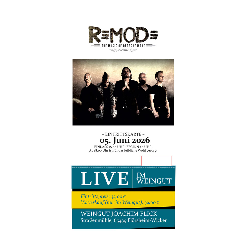 Remode verleiht den zeitlosen Hits von Depeche Mode eine neue Dimension. Mit kraftvollen Gitarrenriffs, pulsierenden Drums und einer charismatischen Stimme bringen sie die Songs auf die Bühne und lassen sie in einem rockigen Gewand erstrahlen. Dabei bleibt die Band stets nah am Original, ohne dabei ihre eigene kreative Note zu verlieren.Die Bandmitglieder von Remode sind wahre Meister ihres Fachs. Mit jahrelanger Erfahrung und einer tiefen Verbundenheit zur Musik von Depeche Mode schaffen sie es, die Essenz der Songs einzufangen und sie mit einer rohen Energie zu präsentieren, die das Publikum mitreißt.